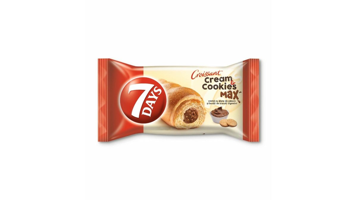 Croissant cu crema de vanilie si biscuiti 7 Days 80g