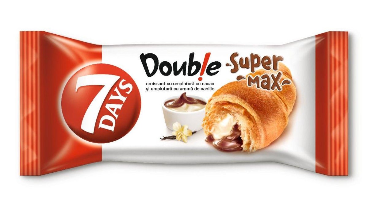 Croissant cu umplutura de cacao si vanilie Double Super Max 7 Days 110g