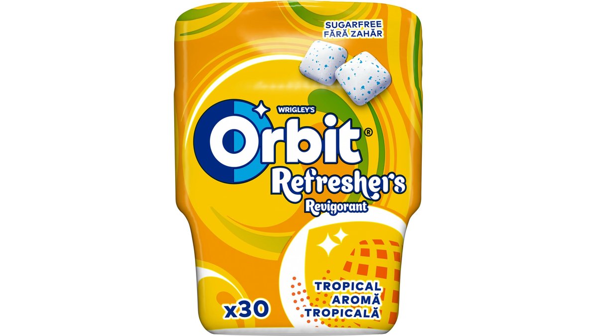 Orbit Refreshers Tropical guma de mestecat fara zahar cu indulcitori si arome de fructe 30 buc 67g