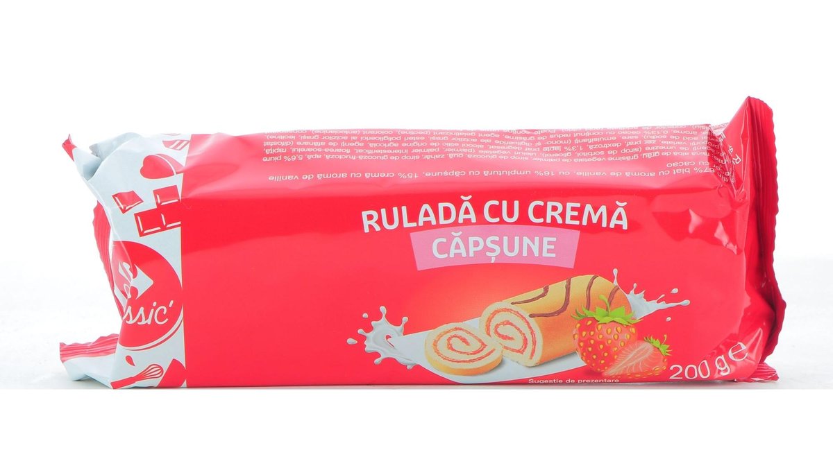Rulada cu crema de vanilie & umplutura de capsuni Carrefour Classic 200g