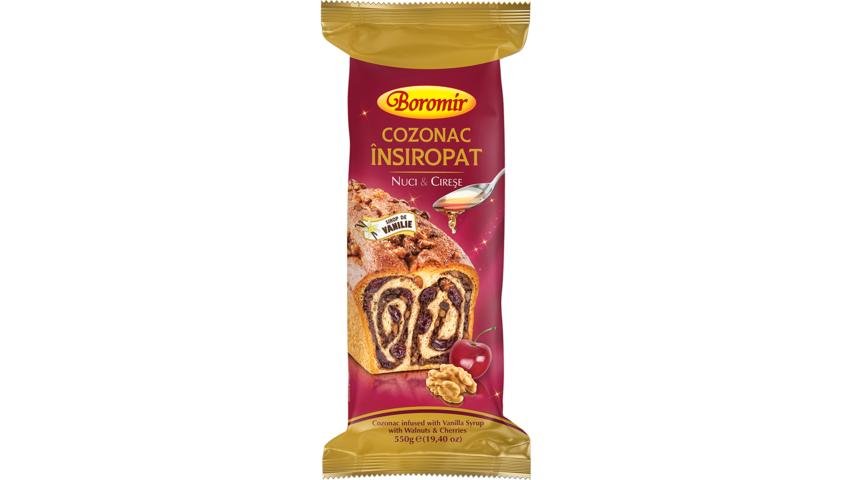 Cozonac insiropat cu nuci si cirese Boromir 550g