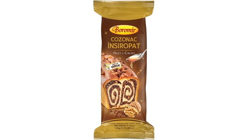 Cozonac insiropat, cu nuci si cacao, Boromir 550g