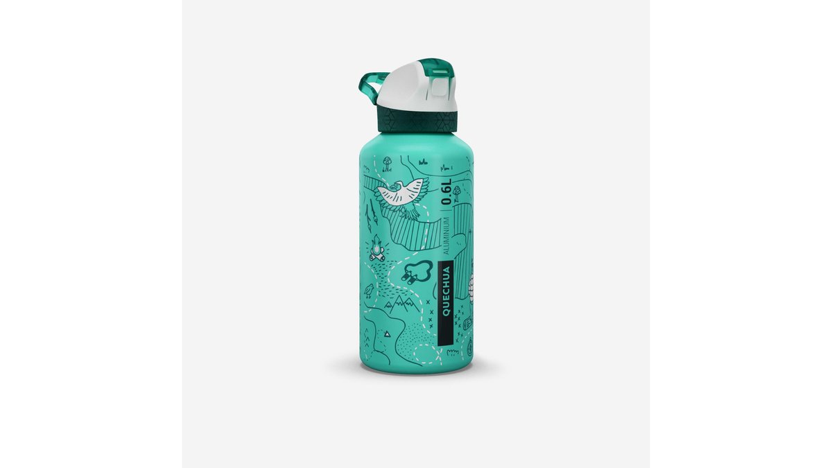 Bidon aluminiu 500, capac instantaneu,cu pipetă și pai Drumeție 0,6L Copii