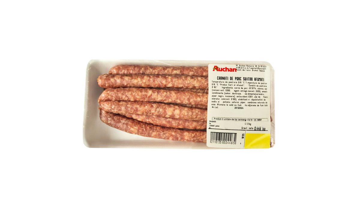 Carnati de porc subtiri afumati Auchan, +/- 500 g