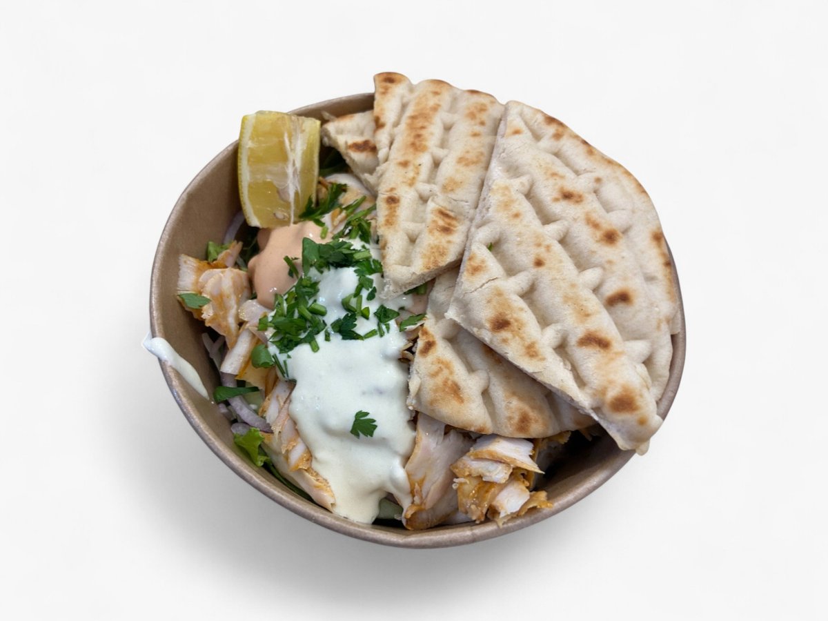 CONTINE : lipie, carne pui, salata de varza alba si rosie,salata iceberg ceapã, cartofi prajiti, castraveti murati, sos special picant si sos usturoi ;