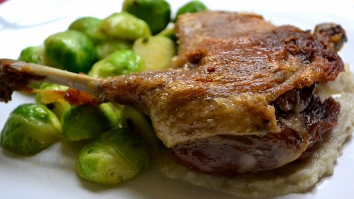 Pulpa de rata la cuptor cu piure de cartofi și varza de Bruxelles