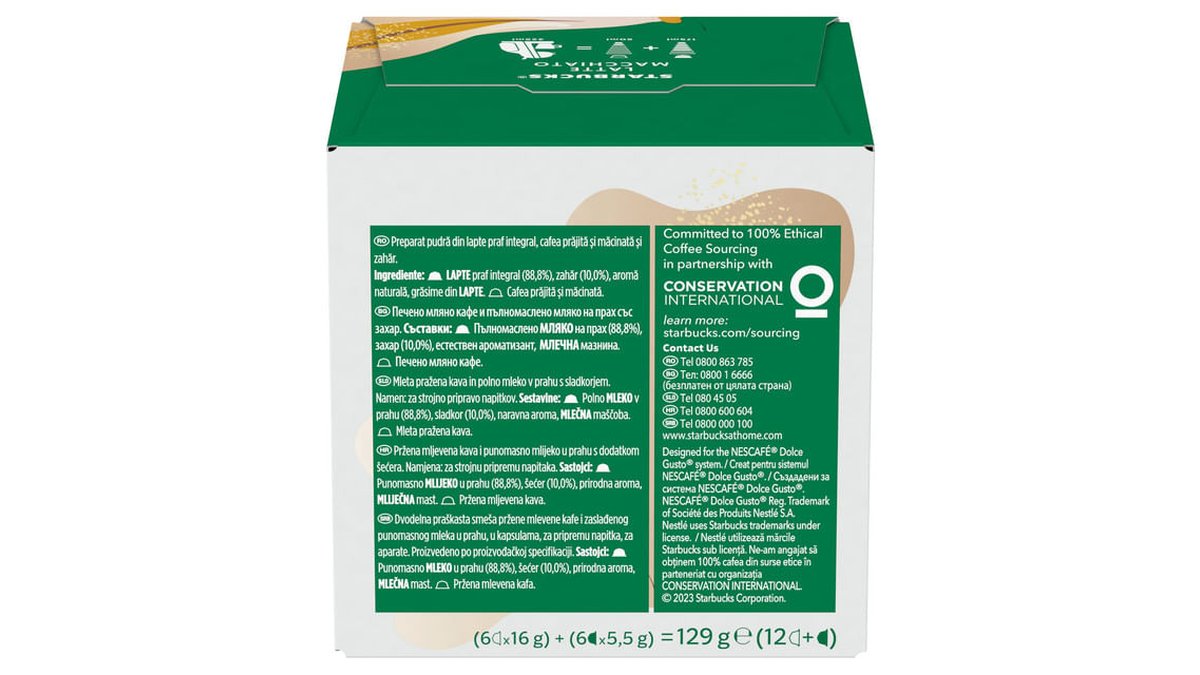 Capsule cafea Starbucks Latte Macchiato, compatibile Dolce Gusto, 6 capsule cafea x 6 lapte
