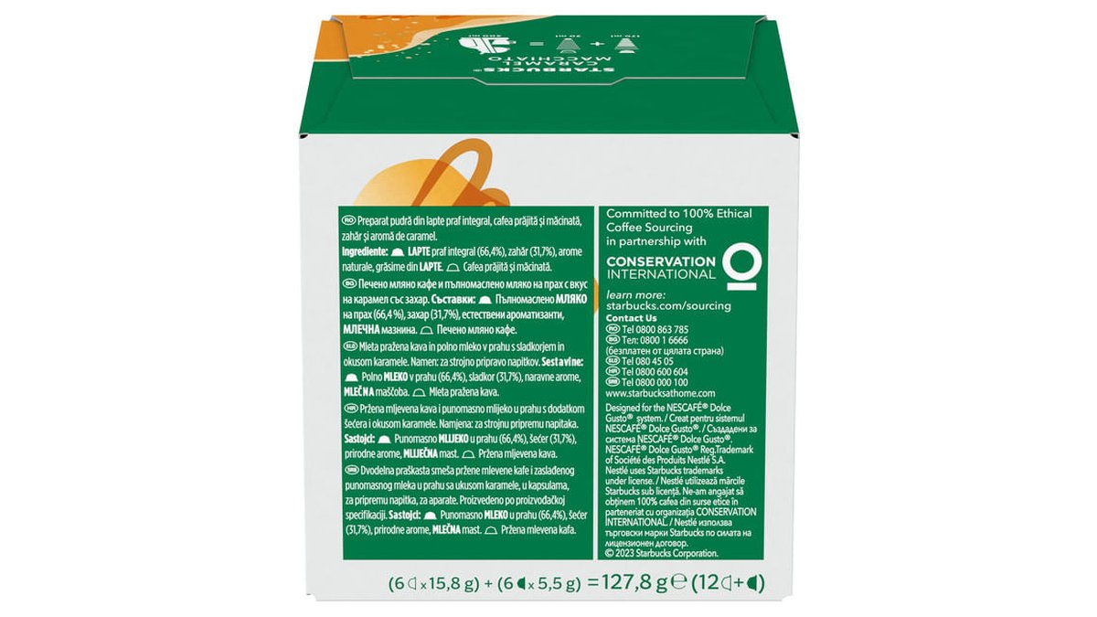 Capsule cafea Starbucks Latte Macchiato Caramel, compatibile Dolce Gusto, 6 capsule cafea x 6 lapte