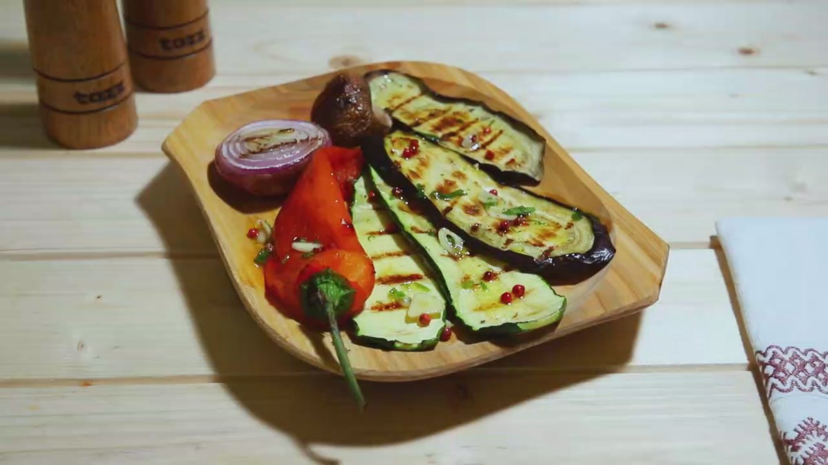 Ardei, ceapă, ciuperci, dovlecei, vinete. 350 g