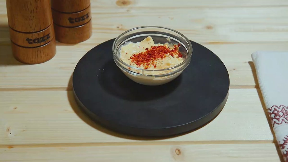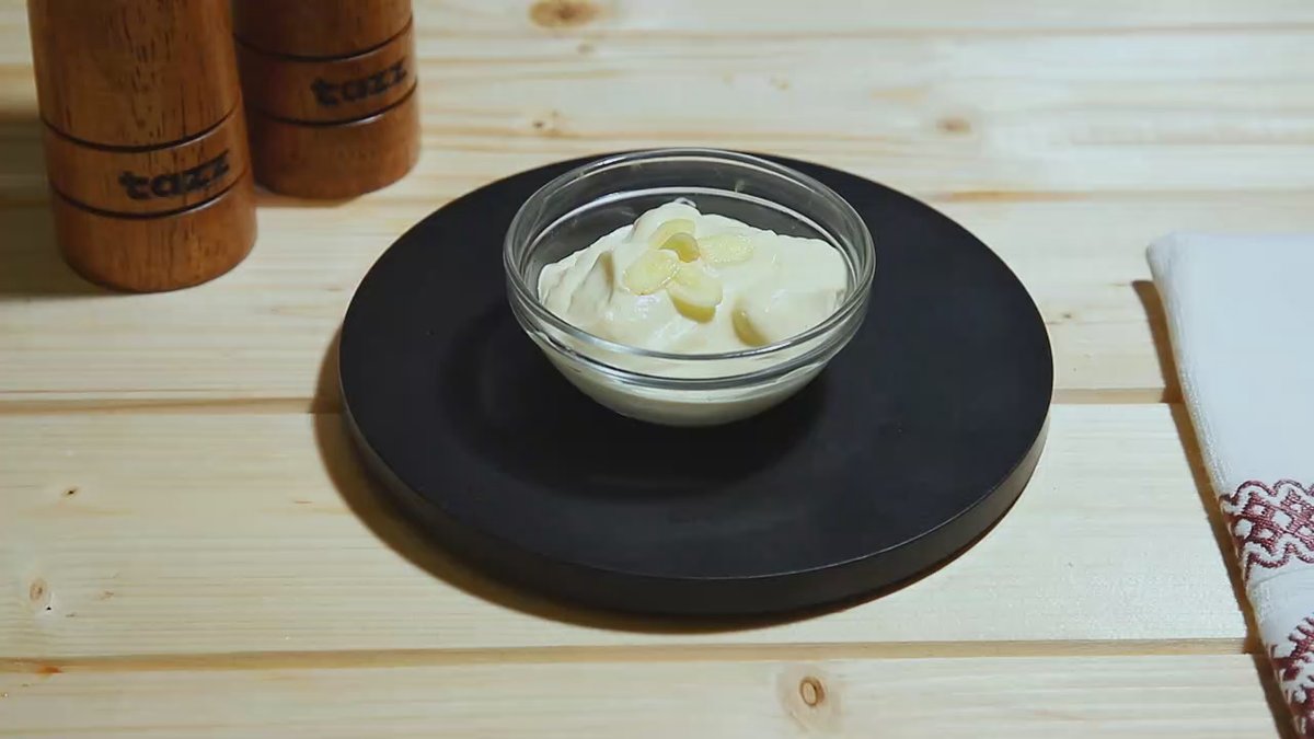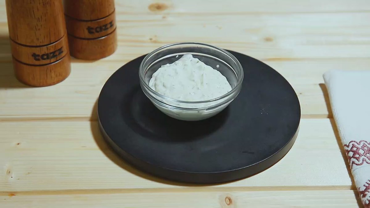 Iaurt grecesc, smântână, castraveți proaspeți și murați, usturoi, mirodenii. 50 g