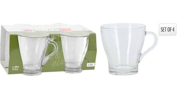 Set 4 cani pentru cafea/ceai, sticla, 300 ml, Transparent