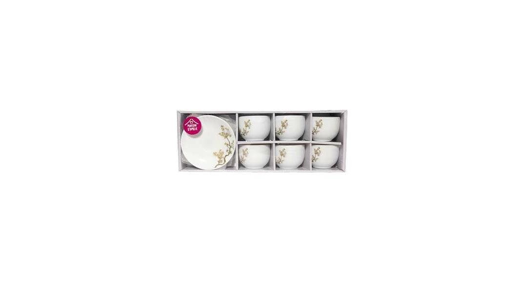 Set 6 cesti si 6 farfurii Maison D'Amelie Pearl Iris Zen Garden, opal, 220 ml