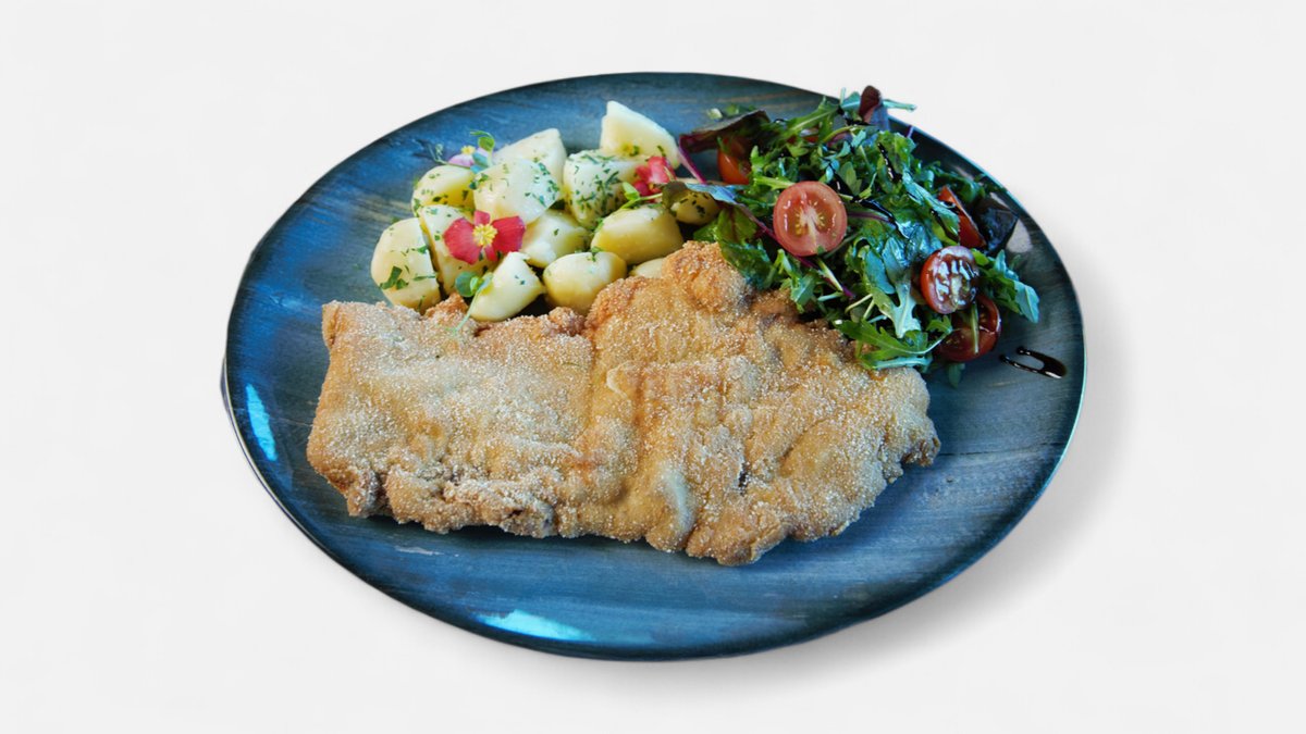 Snitel Vienez de vita cu cartofi natur, mix salata si patrunjel 180/150/50 g