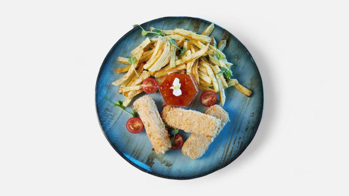 Cascaval pane cu cartofi prajiti naturali si sos dulce acrisor 150/150/70 g