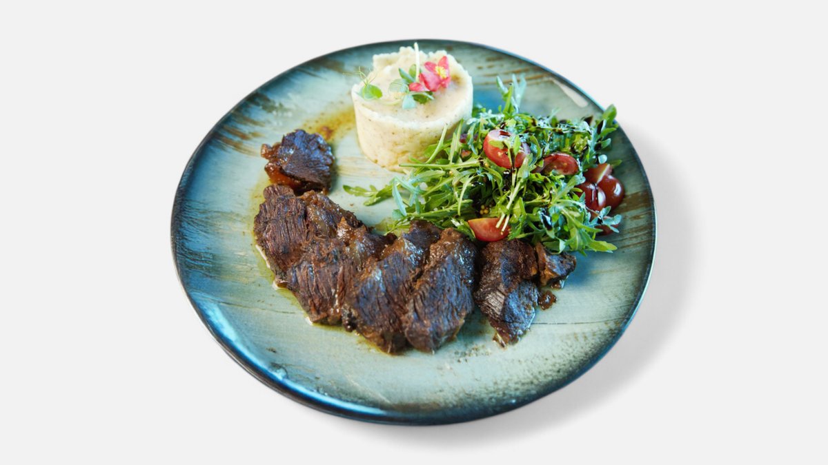 Ingrediente : Obrajori de vita , Piure de cartofi ,Rosii cherry,Rucola ,Crema de trufe ;