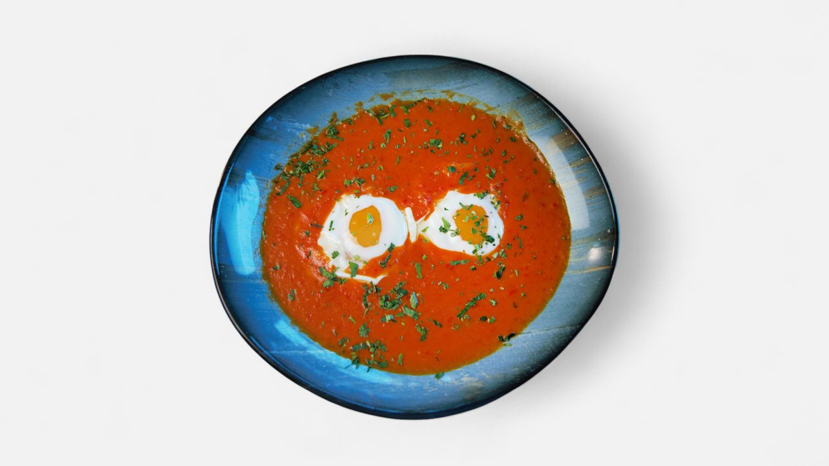 Ingrediente : Rosii ,Oua,Suc de rosii,Ardei gras ,Ceapa,Ardei iute,Busuioc,Usturoi