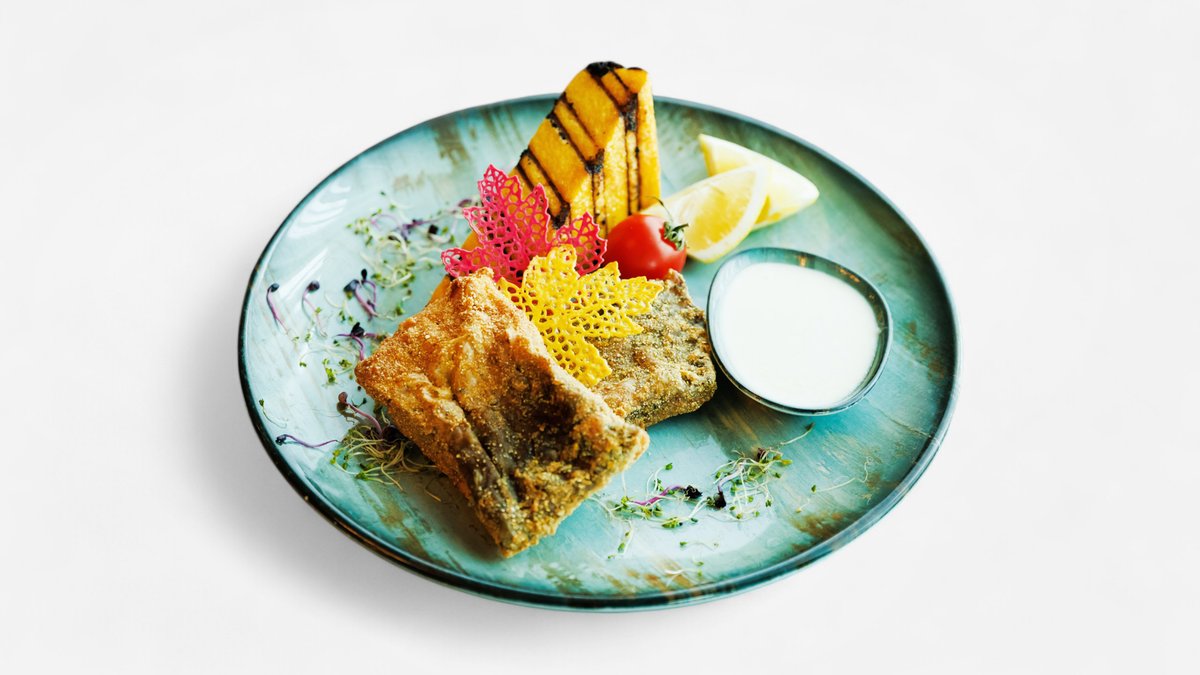 File de șalău,cartofi, ou,pesmet panko, sos tzatziki