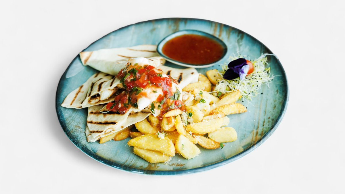 Quesadilla cu vita, cartofi prajiti si sos sweet chilli 200/150/50 g