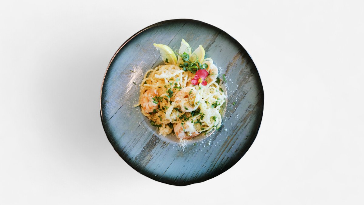 Spaghetti, creveți, lămâie,usturoi, parmezan