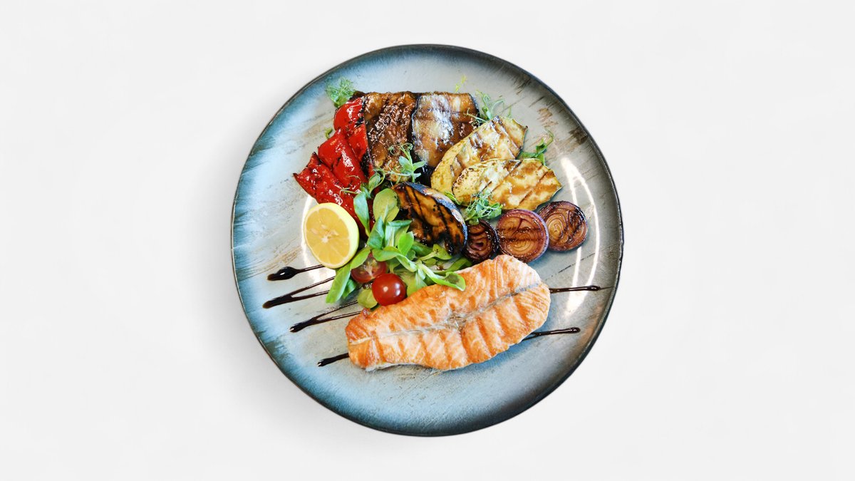 Steak de somon cu legume la gratar si sos de lamaie 180/200/70 g