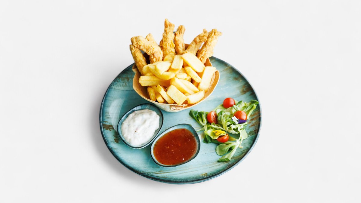 Crispy din piept de pui cu cartofi prajiti, sos chilli si sos tartar 200/200/50/50 g