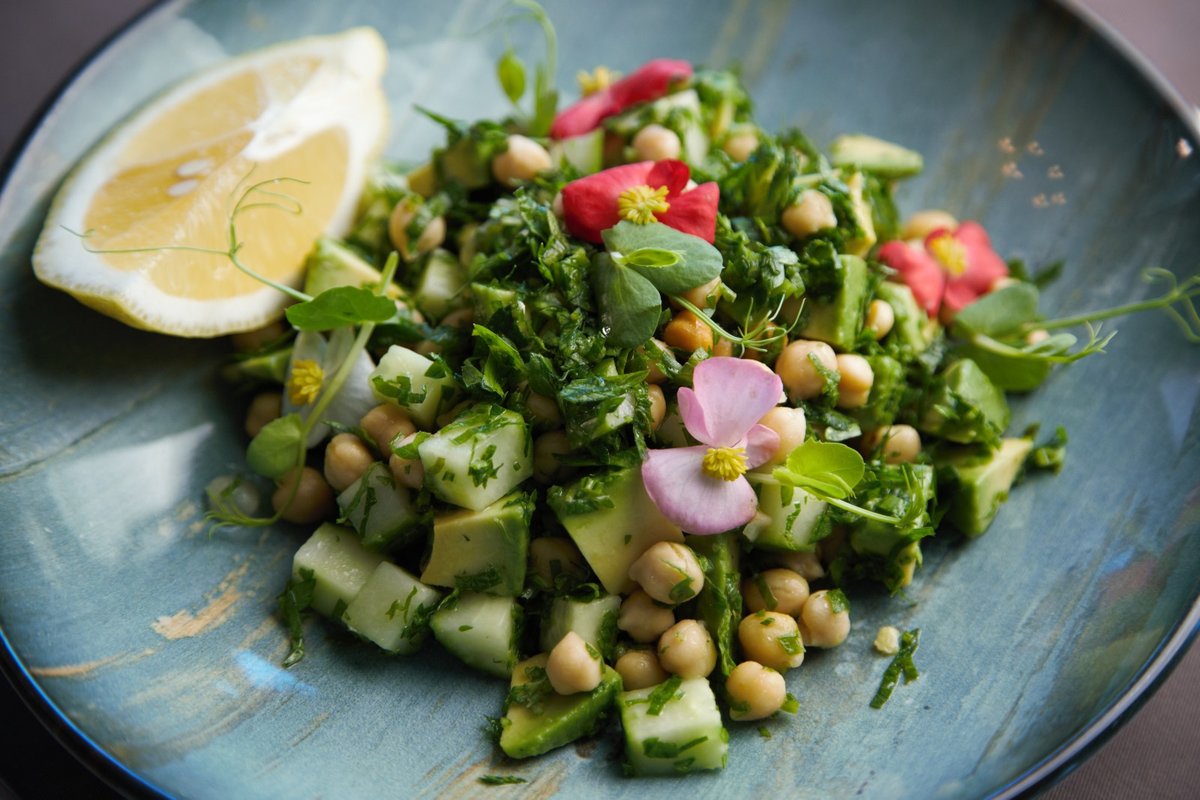 Avocado, naut conservat ,Lamaie,Castraveti,Ceapa rosie ,Ulei de masline, Patrunjel verde