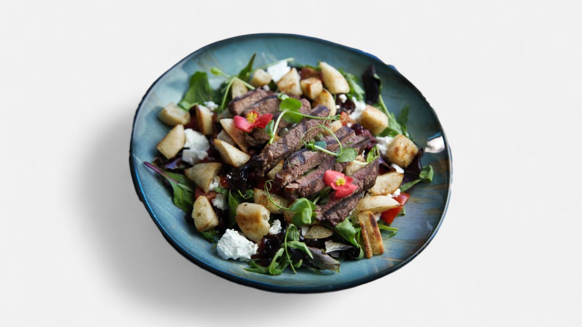 Muschi de vita Black Angus,Salata mix ,Rosii cherry,Branza feta Akadia,Bagheta frantuzeasca ,Merisoare deshidratate ,Ceapa caramelizata