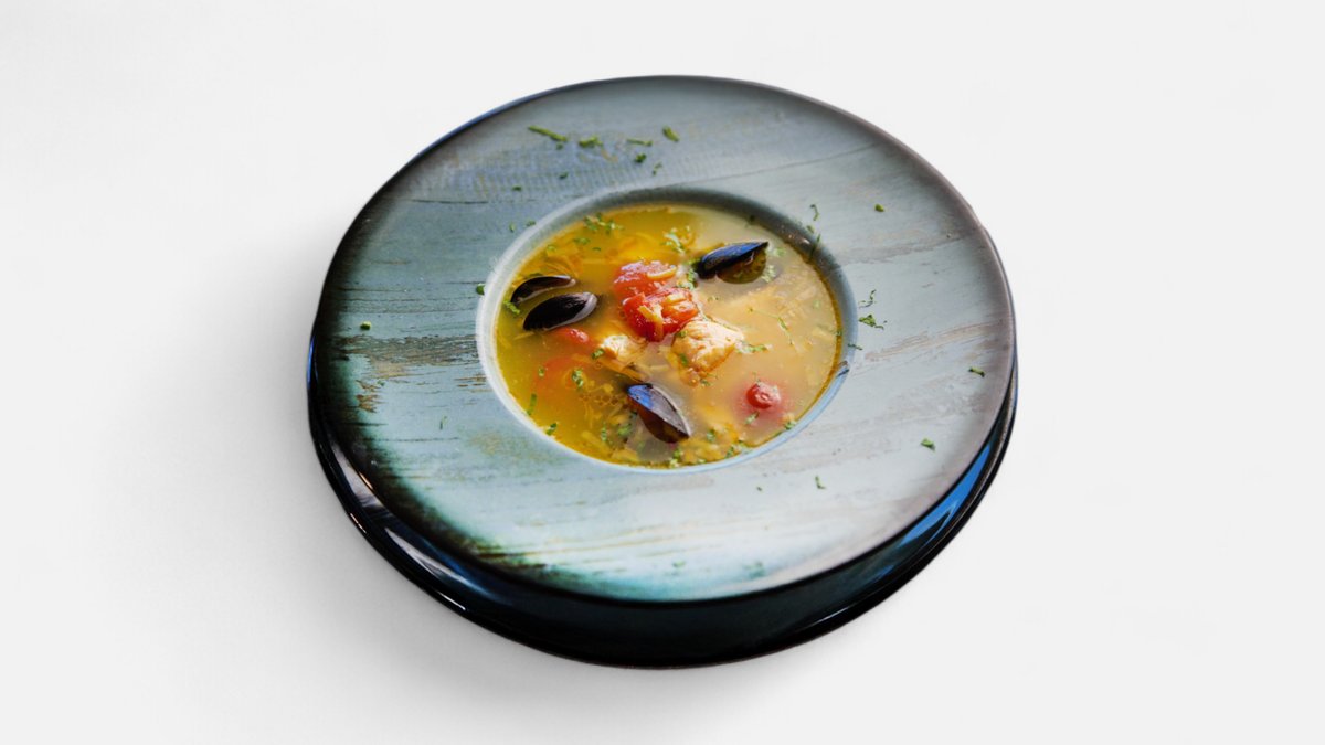 Ingrediente :somon, șalău, creveți, carne de scoici, scoici in cochilie,calamar, roșii, praz, șofran