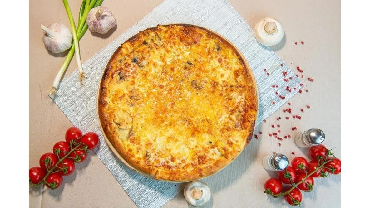 Mozzarella, sos pizza, piept de pui afumat, ciuperci, roșii 460g