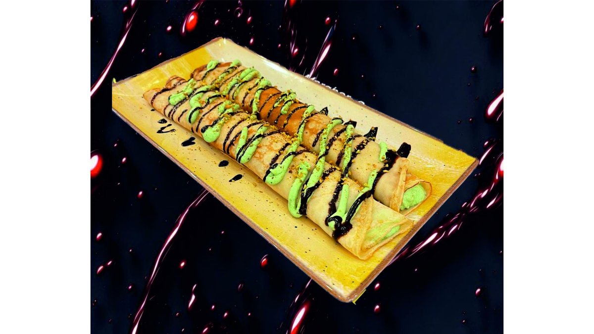 Desert - 2 foi de clatita, crema de fistic, mascarpone, frisca, topping de ciocolata si crema de fistic cu frisca, fistic granulat, 286 g