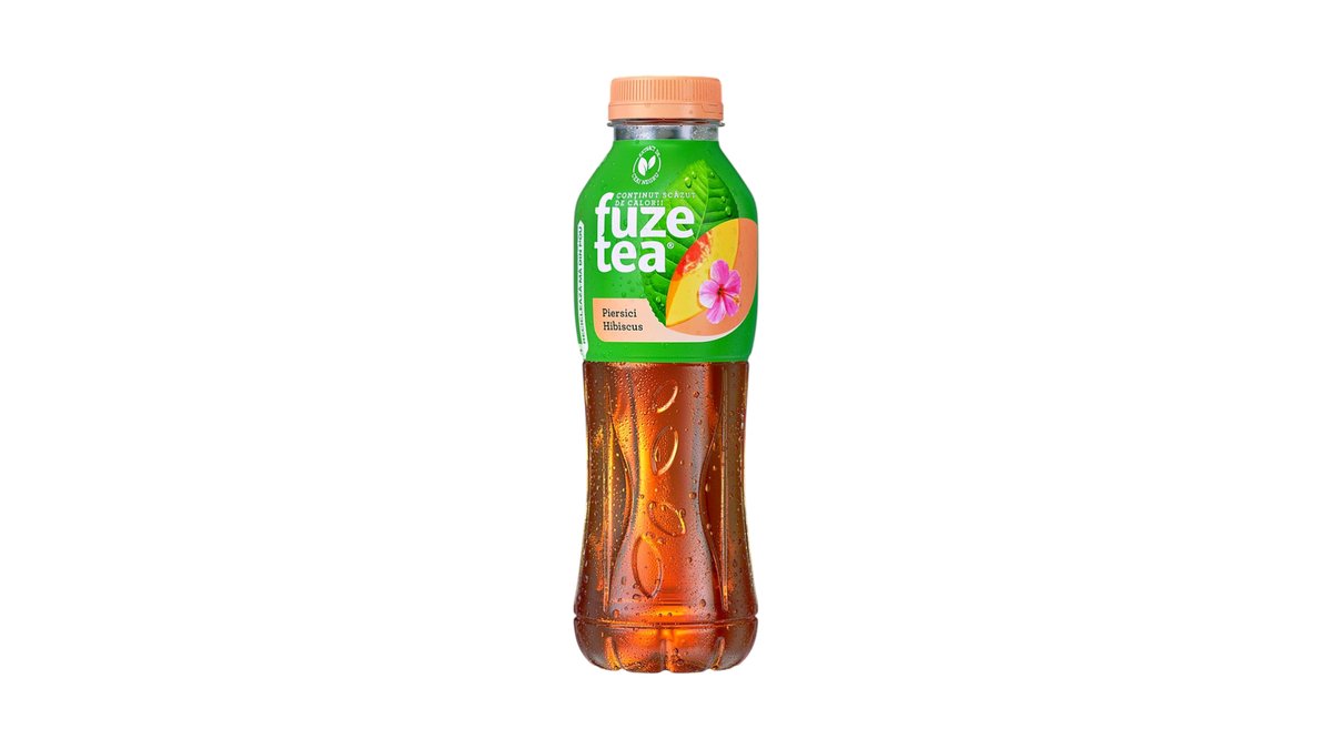 Apa, zahar, fructoza, acidifianți: acid citric si acid malic, extract de ceai negru (0,12%), suc de piersici din concentrat (0,1%), arome naturale, corector de aciditate citrati de sodiu, antioxidant acid ascorbic, extract de hibiscus (0,01%), indulcitor glicozide derivate din steviol. Gramaj: 500 ml Alergeni: nu sunt. Aditivi: fructoza (E1103), acidifianți (acid citric E330 si acid malic E296), arome naturale, corector de aciditate citrati de sodiu (E331), antioxidant acid ascorbic (E300), indulcitor glicozide derivate din steviol (E960).