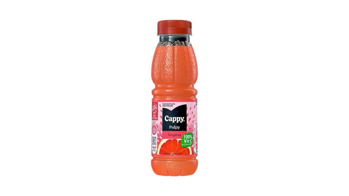 Apa, sucuri de fructe din concentrat 11% (grepfrut 7%, mere 4%), pulpa de grepfrut (4%), sirop de glucoza-fructoza, acidifiant E330, vitamina C (acid L-ascorbic), arome, corector de aciditate (E331), indulcitor (E960a), stabilizatori (E414, E445, E307), corectori de aciditate (E327, E578), colorant (E160a). Gramaj: 330 ml Alergeni: nu sunt. Aditivi: sirop de glucoza-fructoza (E1103), acidifiant acid citric (E330), vitamina C (acid L-ascorbic E300), arome, corector de aciditate citrate de sodiu (E331), indulcitor glicozide steviolice purificate (E960a), stabilizatori (guma de acacia E414, esteri glicerici ai rasinilor lemnoase E445, alfa tocoferol E307), corectori de aciditate (lactat de calciu E327, gluconat de calciu E578), colorant caroteni (E160a).