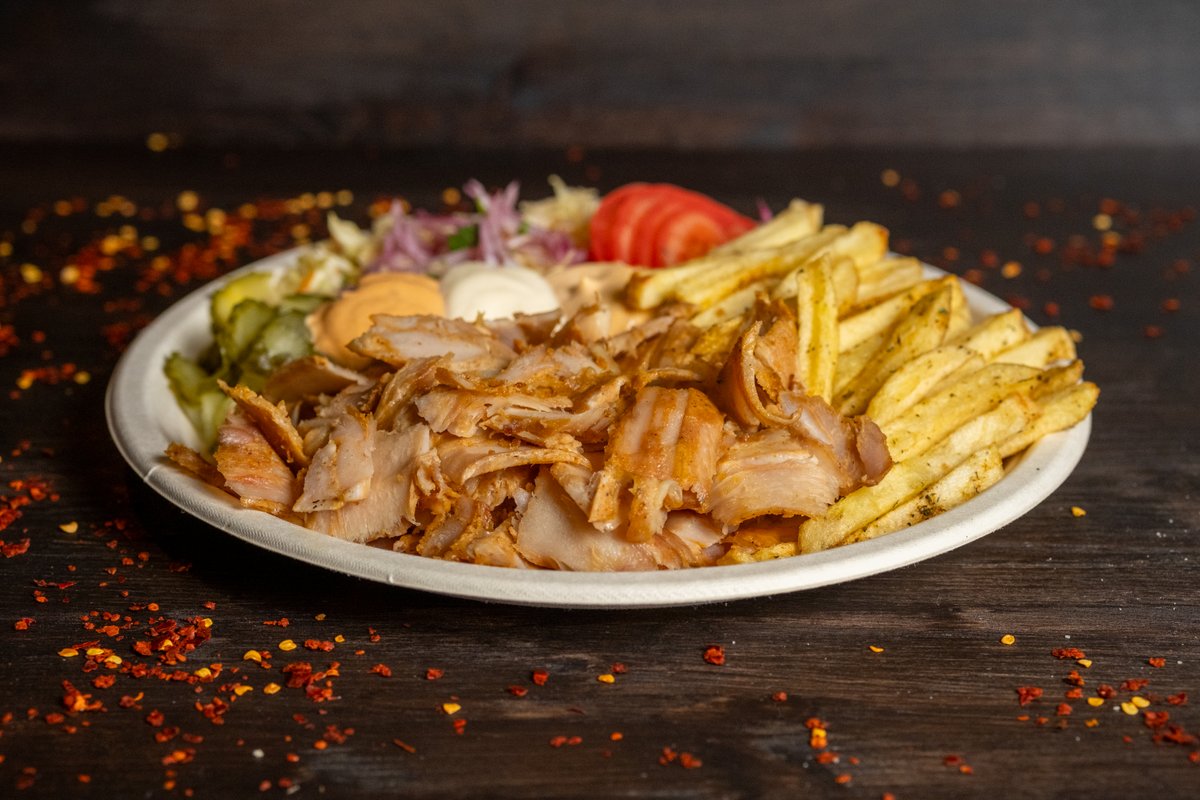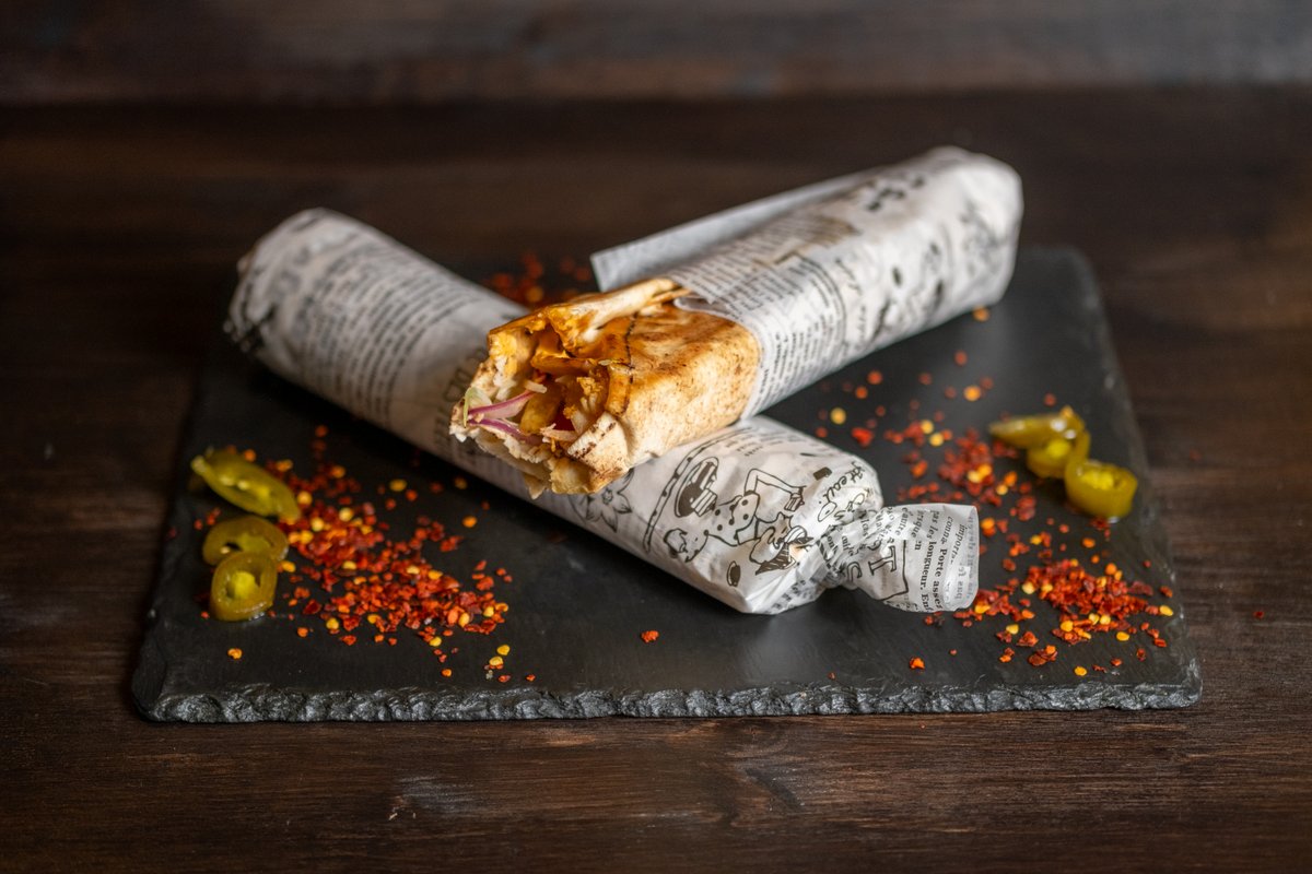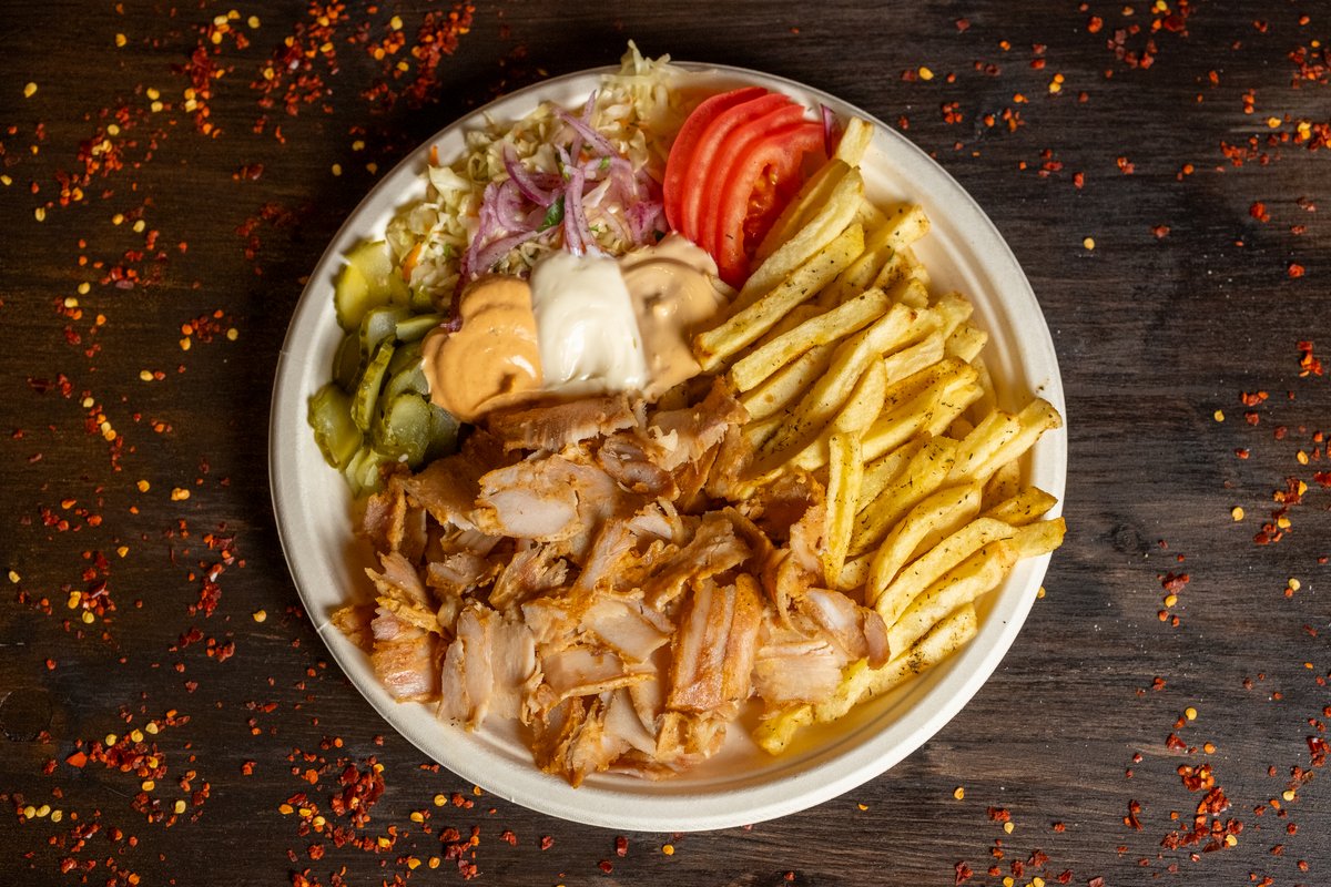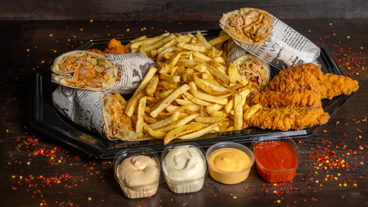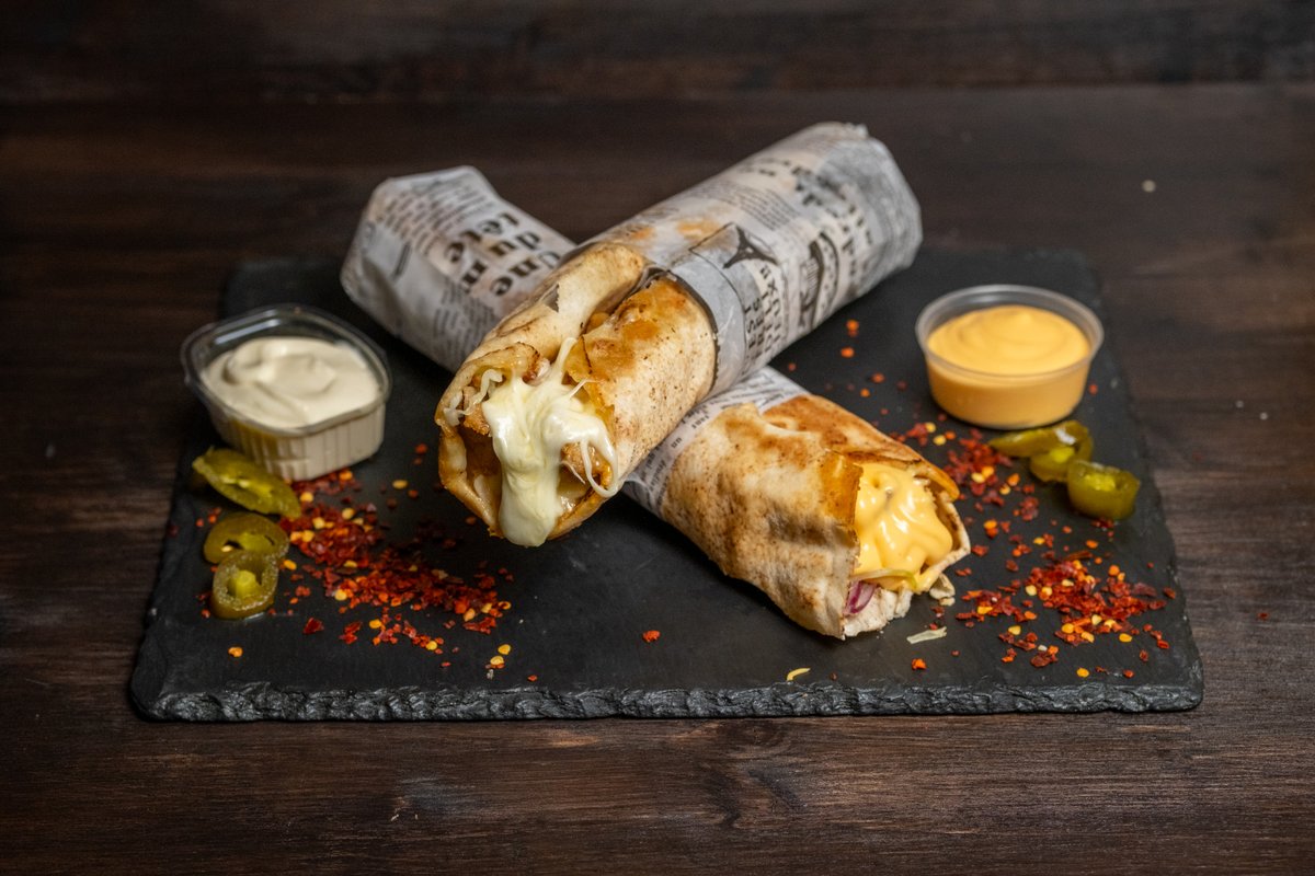 Shaorma de vita+Berbecut+Curcan la farfurie + 3 sosuri