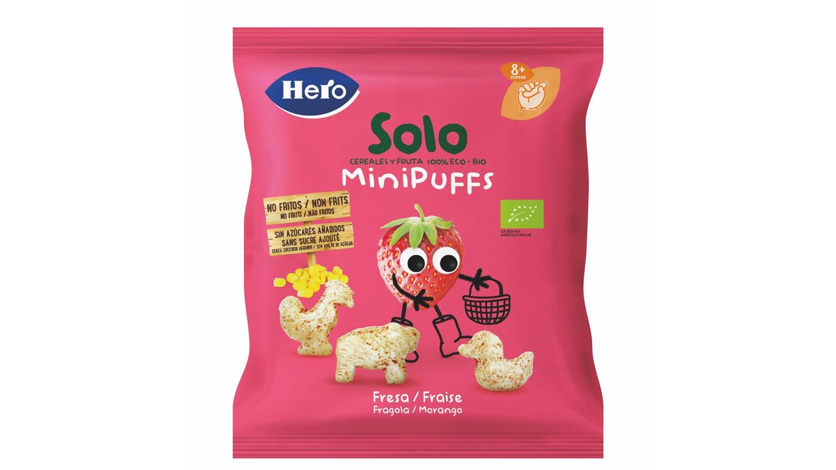 Minipuffs - Snack Bio Din Cereale Cu Capsuni, 18G, 8+, Hero Solo