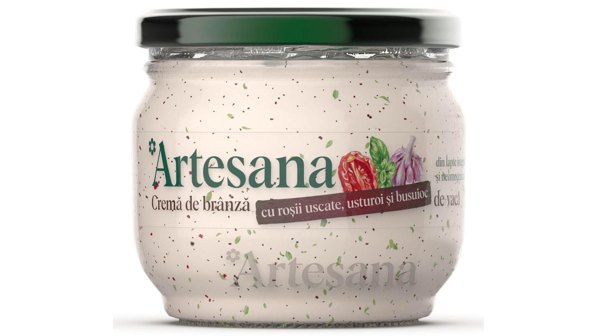 Artesana Crema de branza din lapte de vaca cu rosii uscate, usturoi si busuioc 200 g