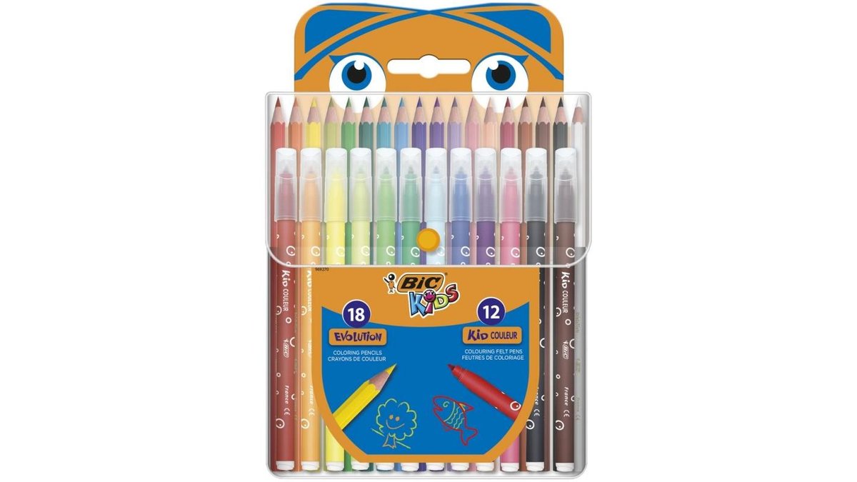 Set de colorat cu 12 markere de colorat si 18 creioane colorate BIC Kids, Multicolor