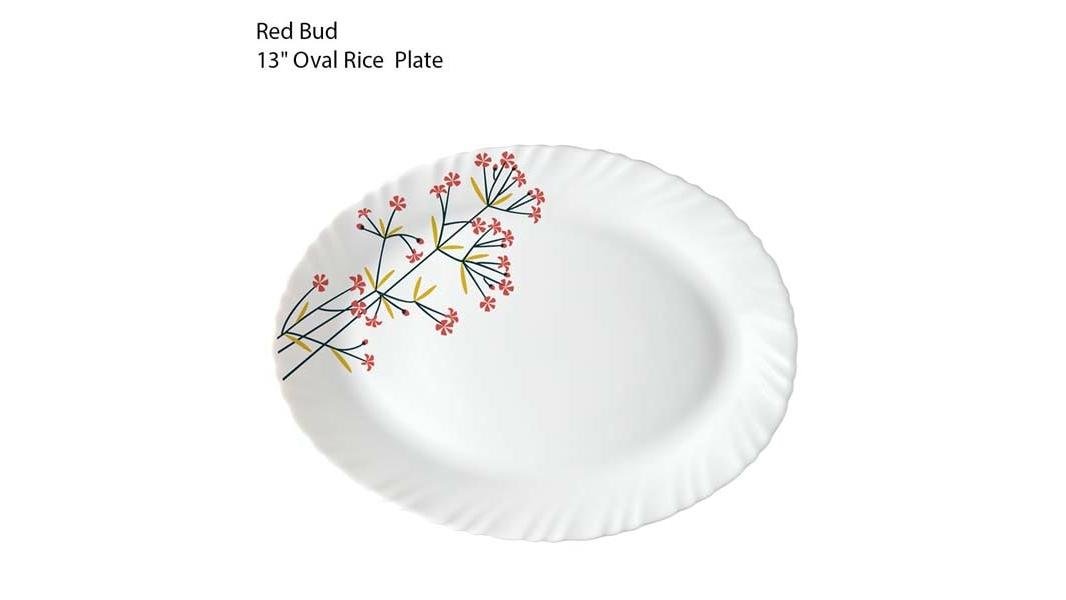 Platou oval Red Bud, opal, 33 cm, Alb cu model