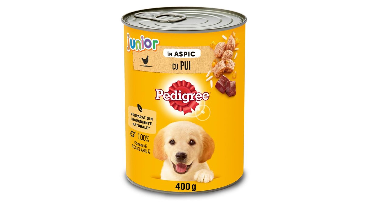 Pedigree Junior hrana umeda la conserva pentru caini juniori cu pui in aspic, 400g