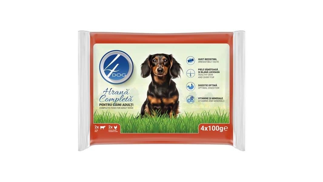 Hrană umedă câine adult, pui şi vită, 4DOG Mixt