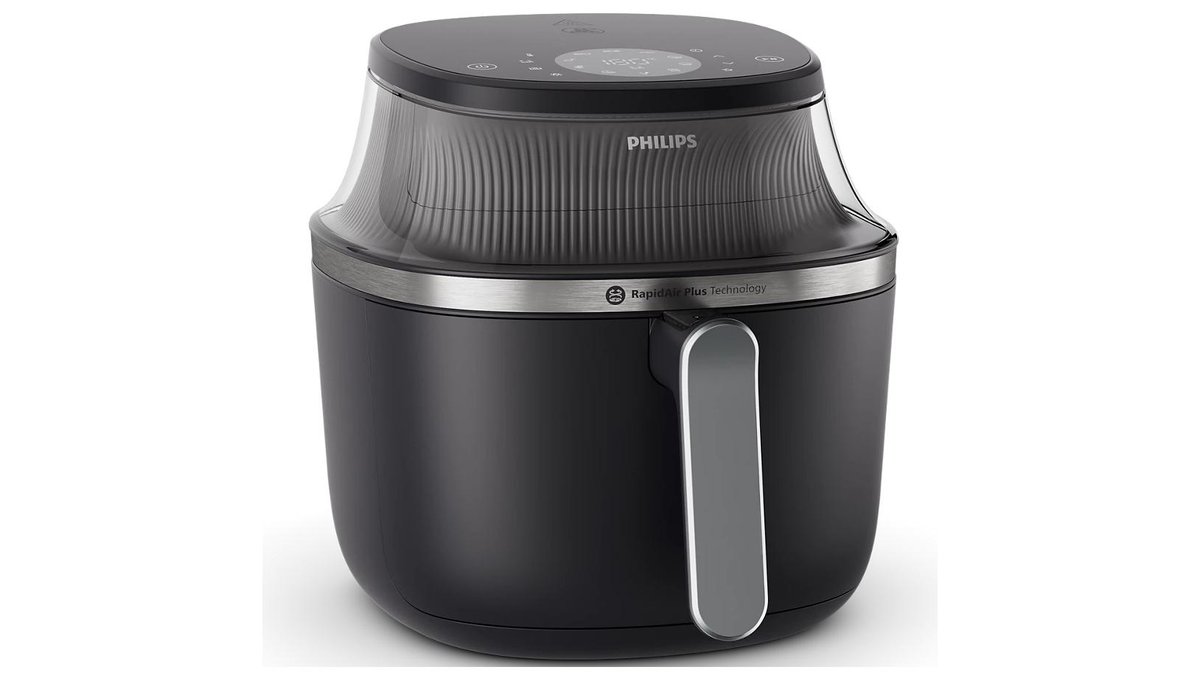 Friteuza fara ulei Philips Airfryer Seria 3000 NA331/00, compact digital, 1700 W, capacitate 6.2L, afisaj digital, fereastra, 16-in-1 functii de gatire, 12 programe presetate, curatare usoara, Culoare: negru cu maner argintiu.