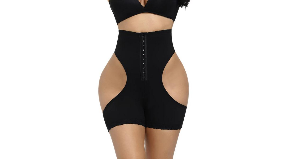 Body modelator cu efect push-up, corset & pernuțe pentru șolduri - Negru