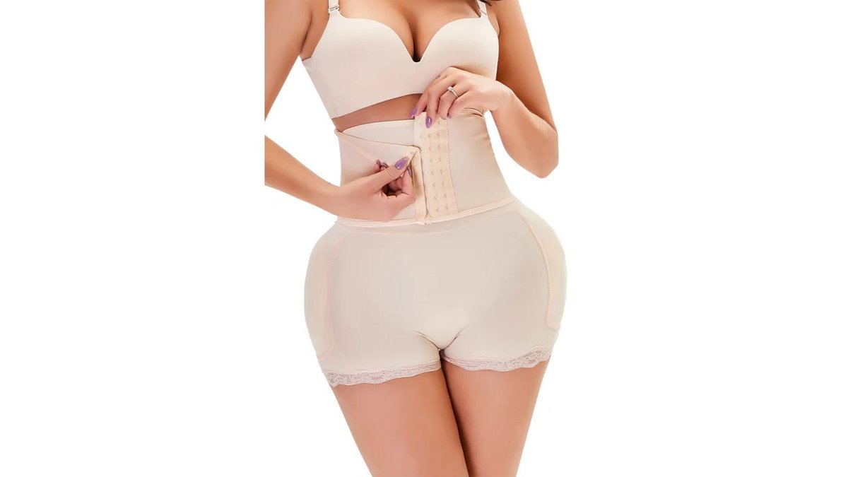 Body modelator cu efect push-up, corset & pernuțe pentru șolduri - Bej