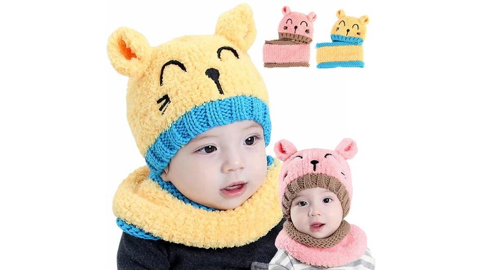Căciulă de iarnă pentru copii tip cagulă, model pompon, cu căptușeală la interior, 6-36 luni