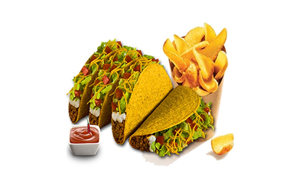 4 Taco din Tortilia, Mozzarella de POST, sau 4 brânzeturi dierite, ceapă roșie, ardei gras, roșii, ciuperci, sos salsa, cartofi rodele, condimente. 4pcs 500g