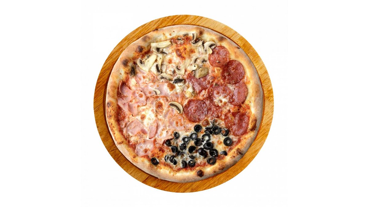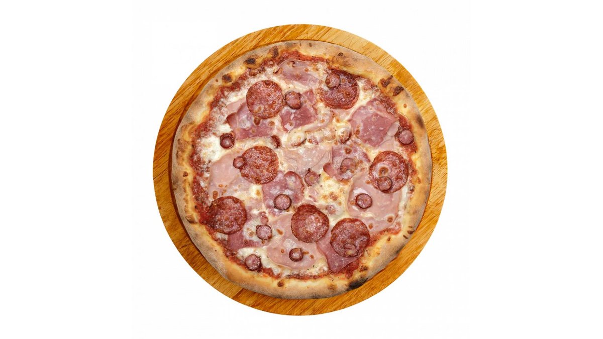 Sos de roșii, mozzarella, prosciutto cotto, salam crud uscat, ciuperci, măsline 550 g