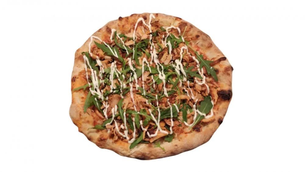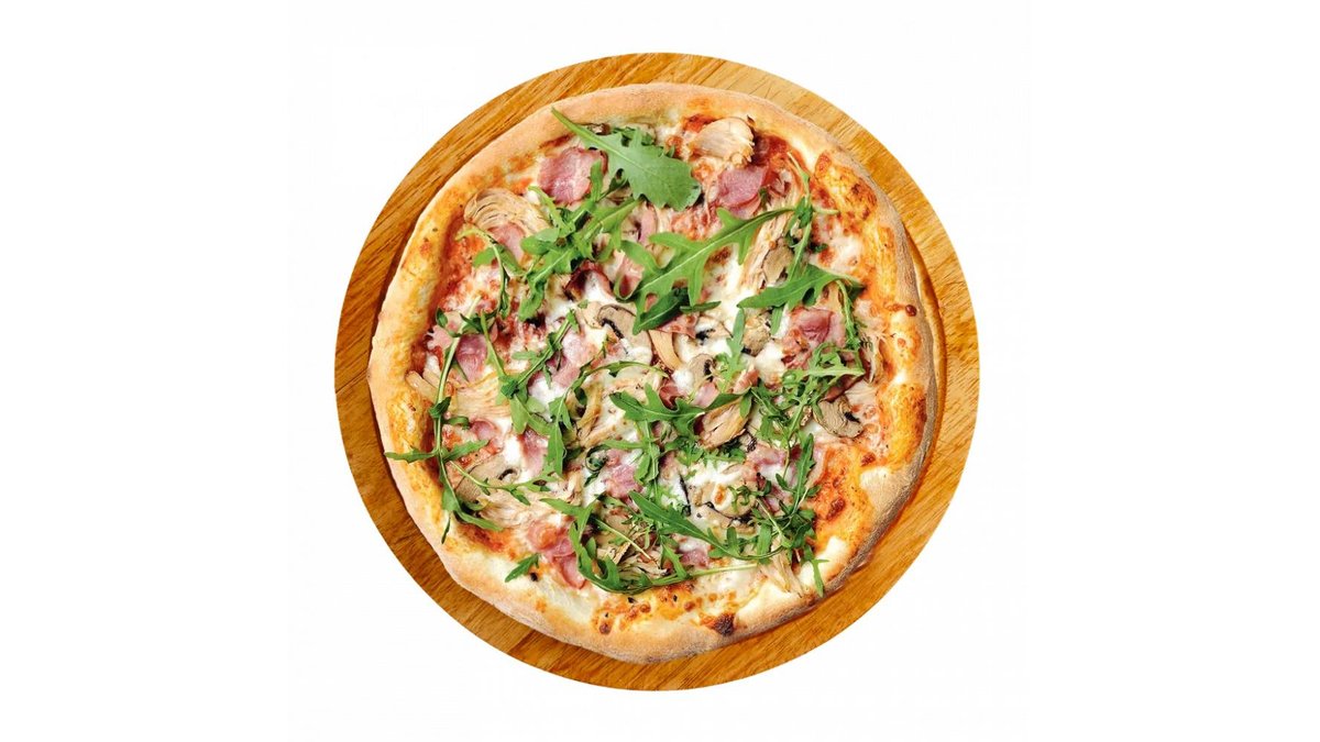 Sos de roșii, mozzarella, piept de pui, bacon, ciuperci, rucola 600 g
