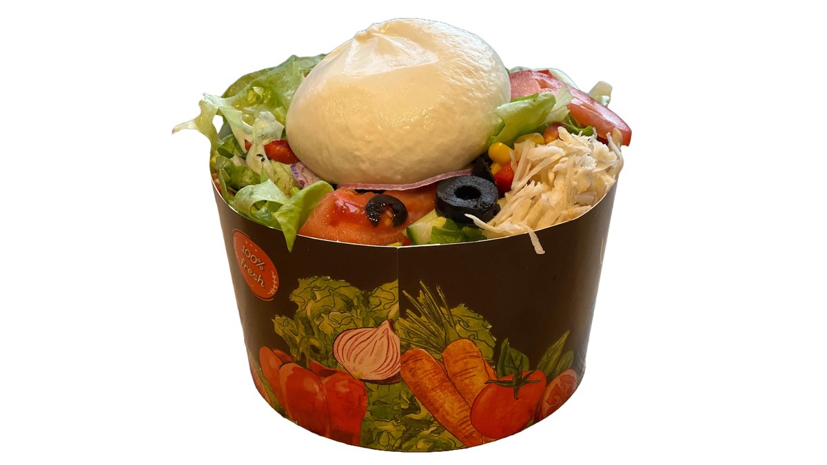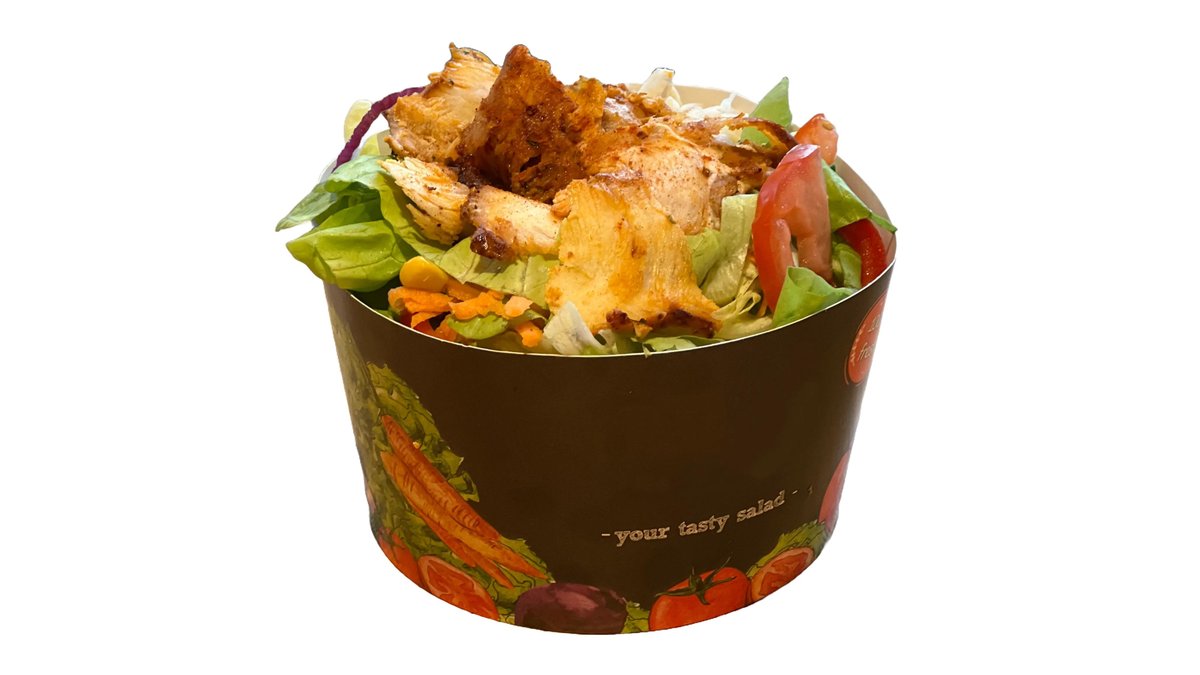 Personalizează-ți salata! Pită proaspăt coaptă pe vatră, pui rotisat, legume și dressinguri la alegere