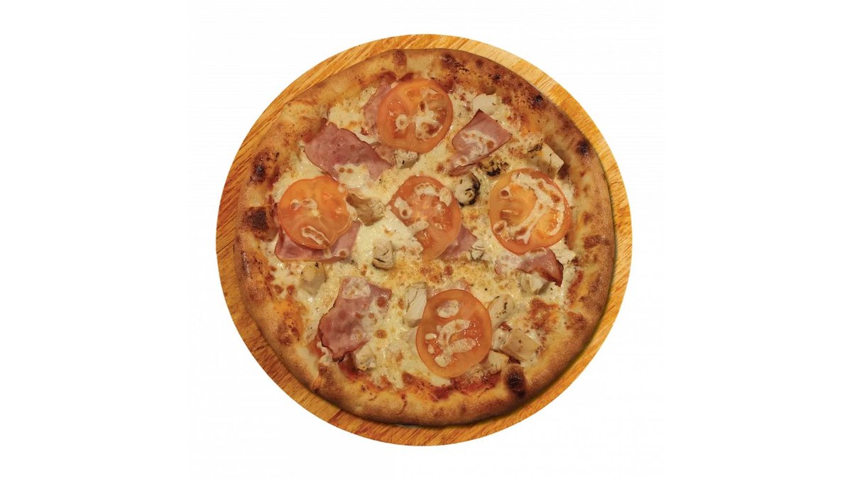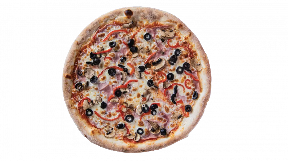 Sos de roșii, mozzarella, prosciutto cotto, ardei gras, ciuperci, măsline 550 g