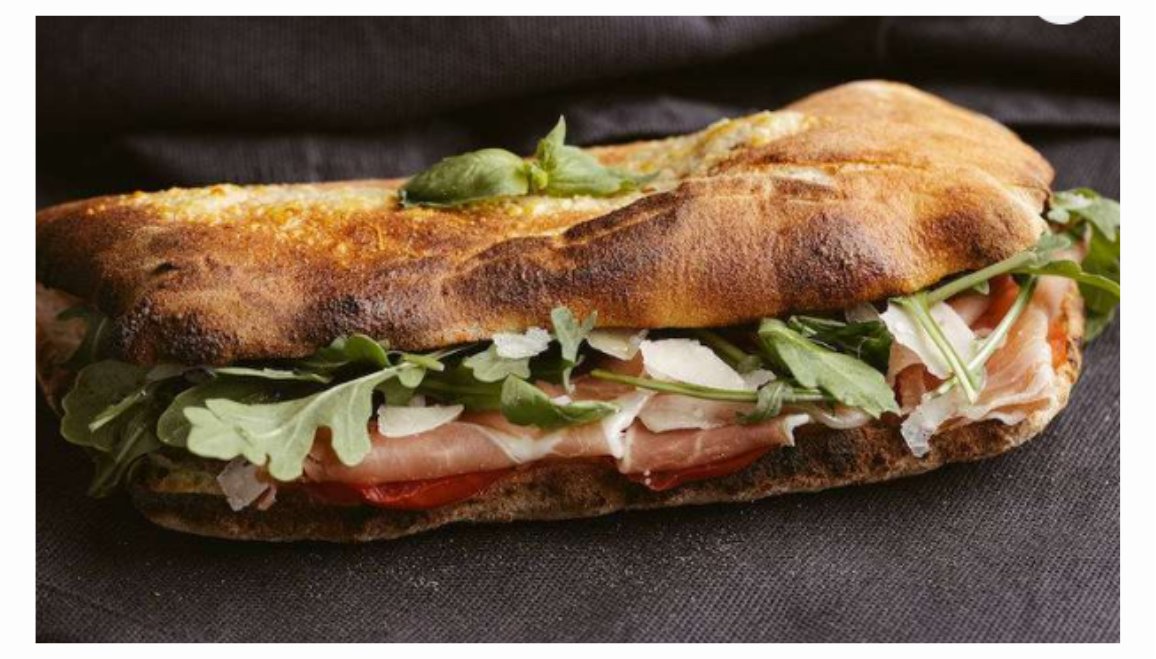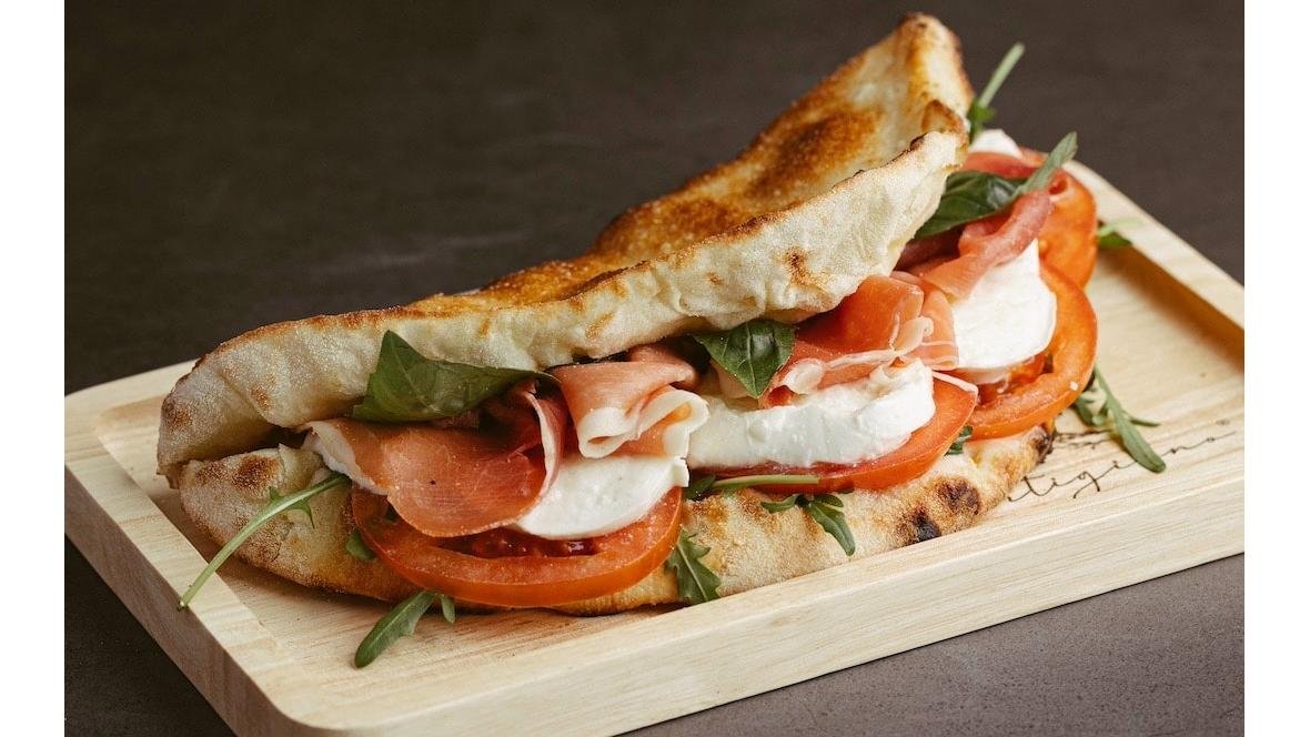 blat de pizza napoletan, mozzarella fior di latte, roșii, prosciutto crudo, rucola, grana padano, ulei de măsline ev