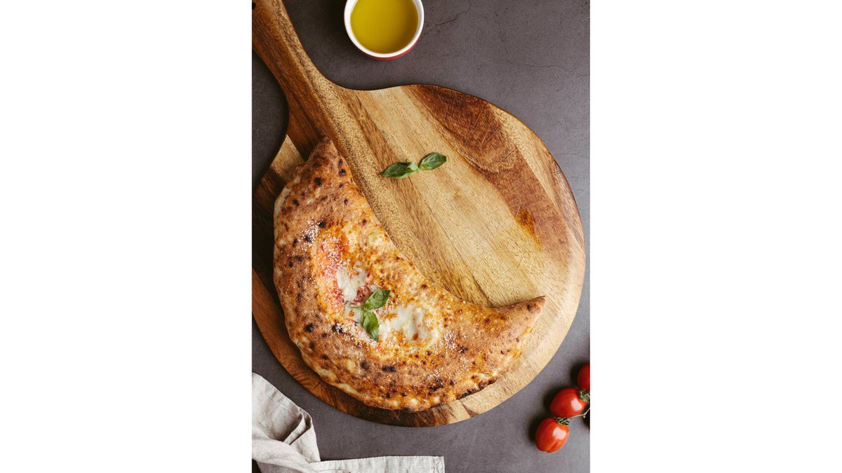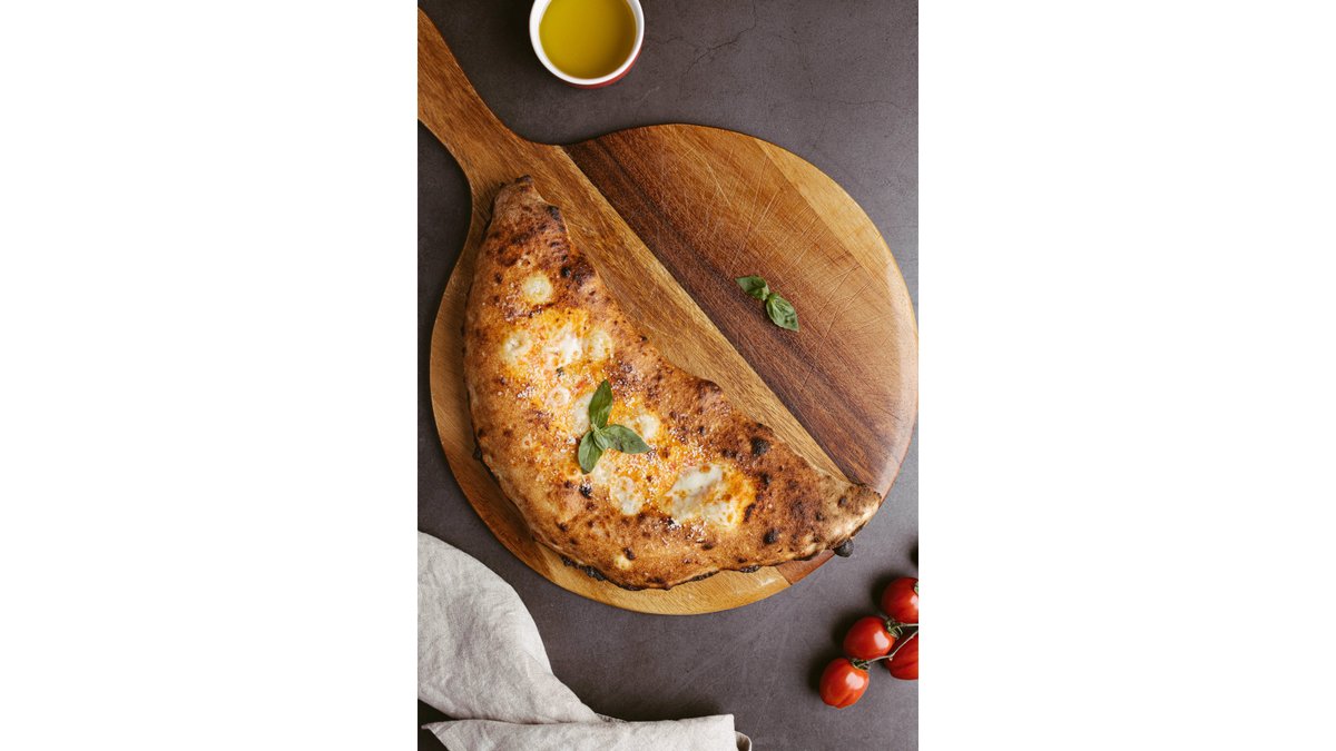 Blat de pizza napoletan , mozzarella di bufala Campana D.O.P., sos de roșii San Marzano D.O.P., parmigiano reggiano D.O.P. , ulei de măsline extra virgin, busuioc proaspăt - 450g